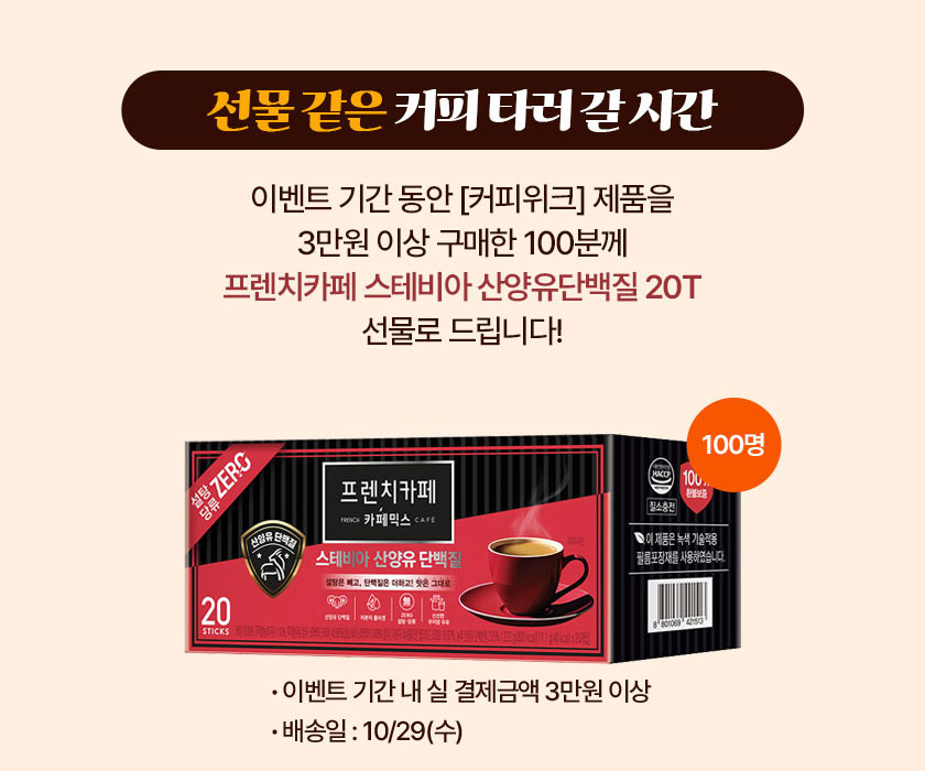 - 하나의 ID당 구매횟수별 사은품 쿠폰 발행개수는 최대 20개 입니다.