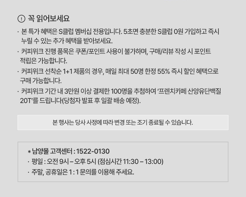 - 선택하신 사은품은 매주 화요일 일괄 발송하며 사은품의 종류는 남양몰 내부 방침에 따라 변경될 수 있습니다.